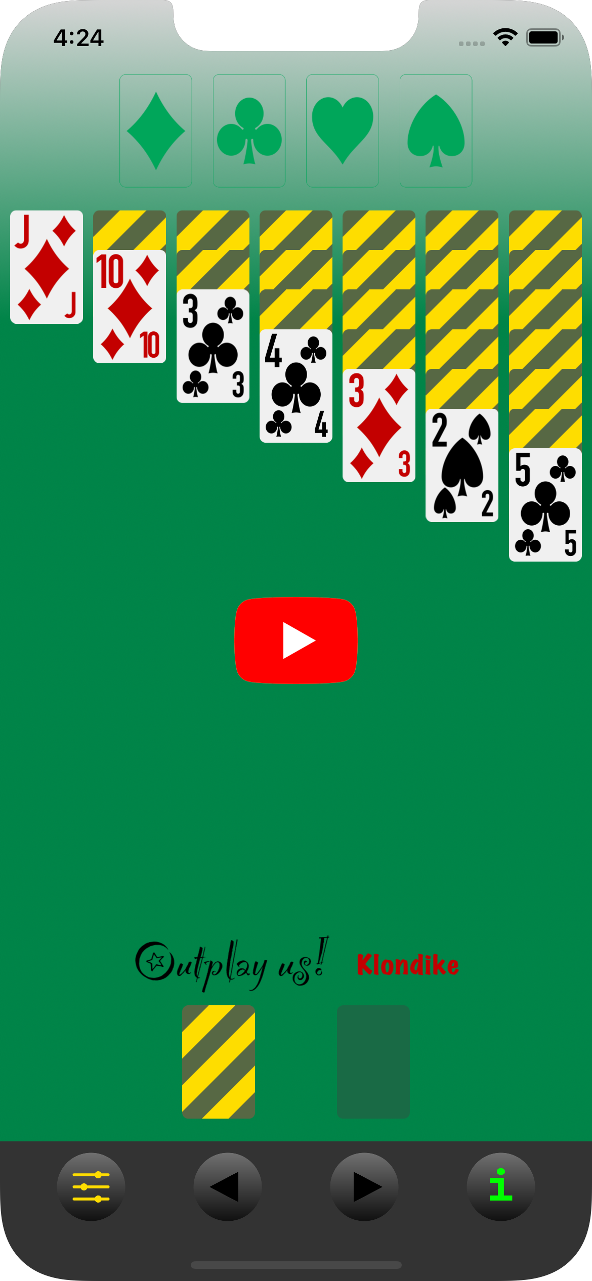 The goal of the game is to move ("build") all cards to the foundation, sorted by suit (diamonds, clubs, hearts, spades) and in ascending order (A-K).