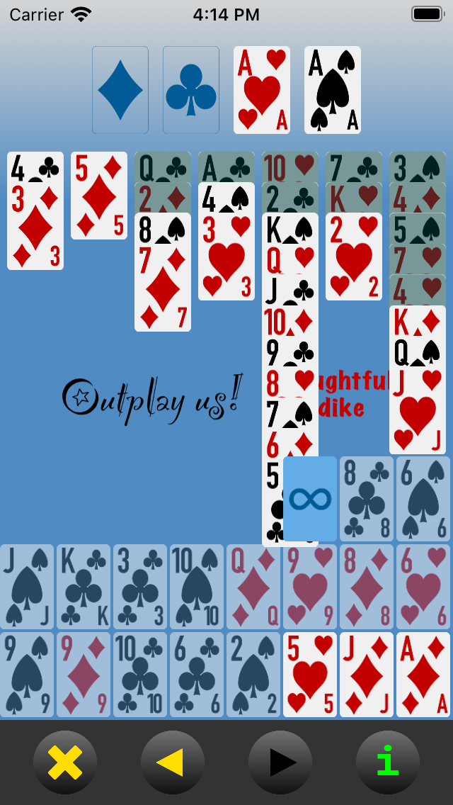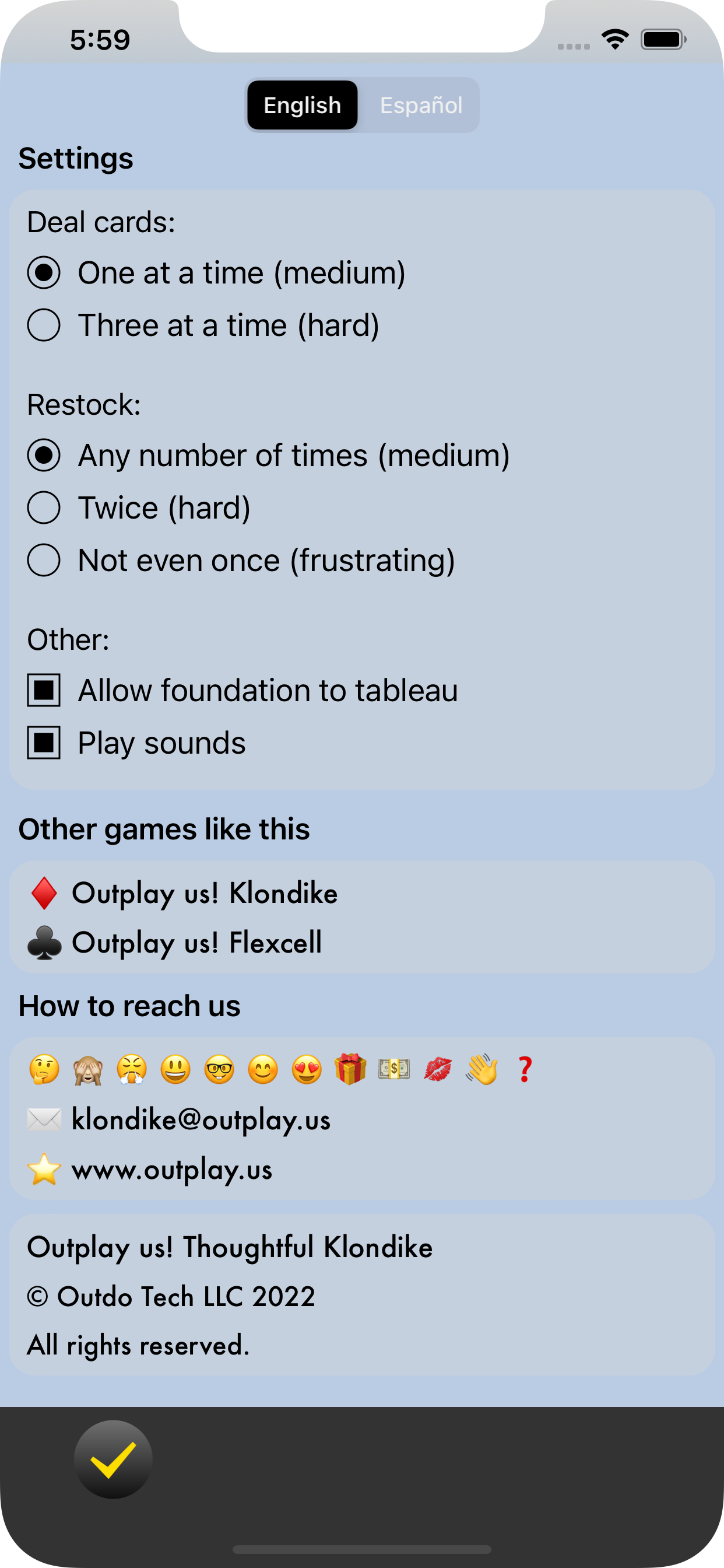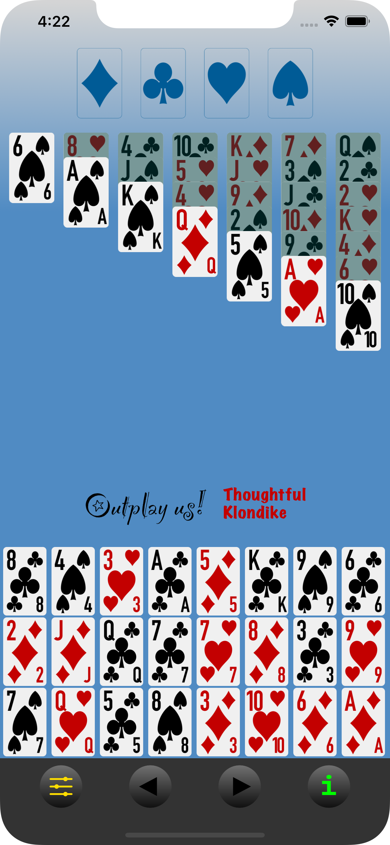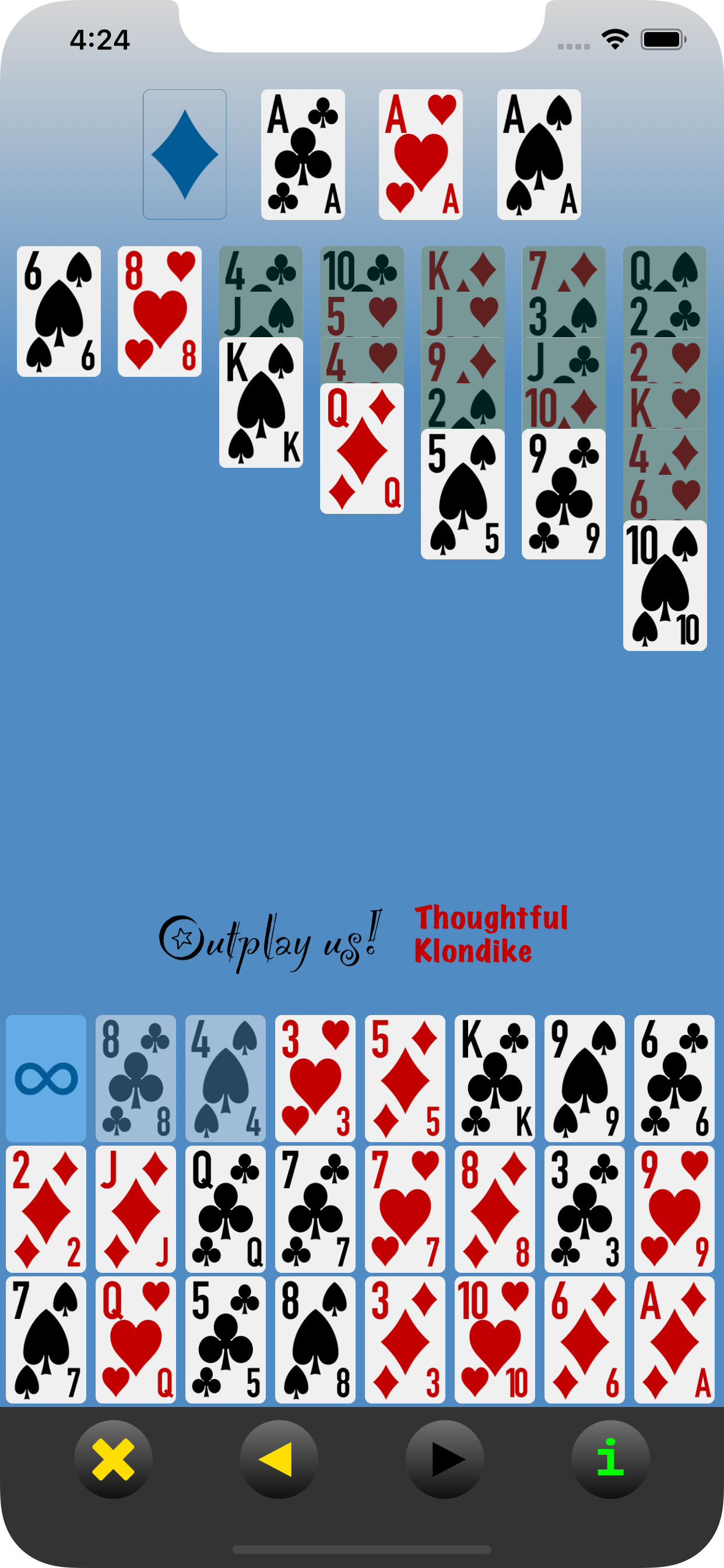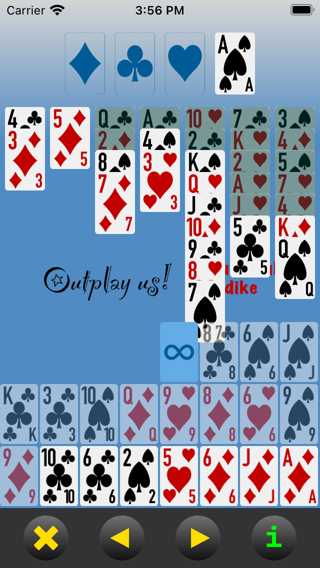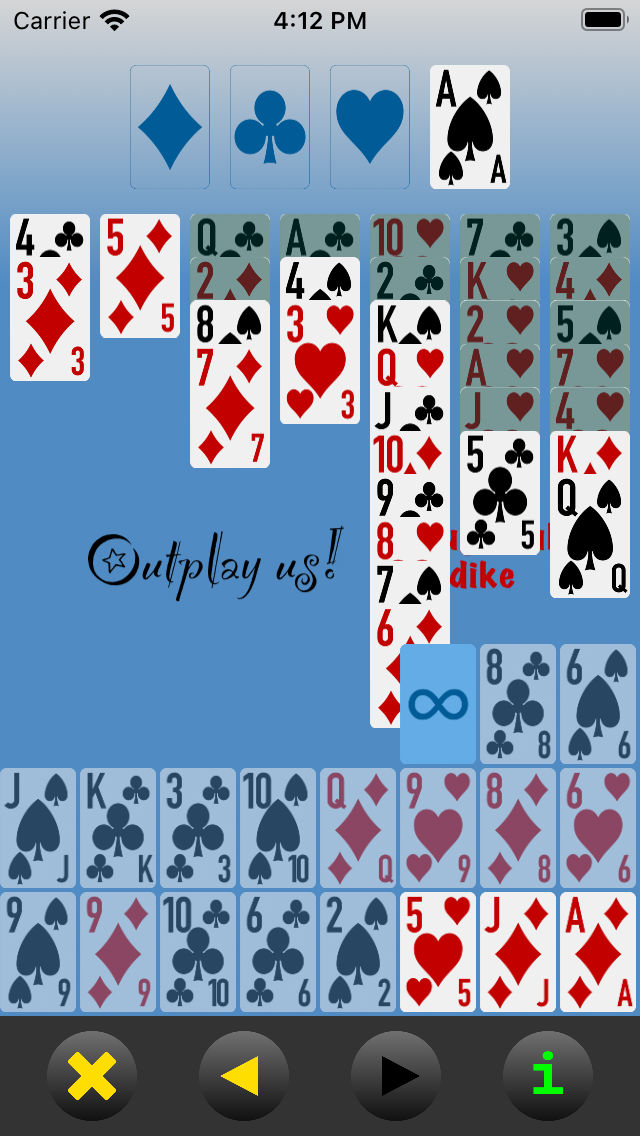 About Outplay us! Klondike. (This button can be tapped at any time without disrupting the current hand.) |